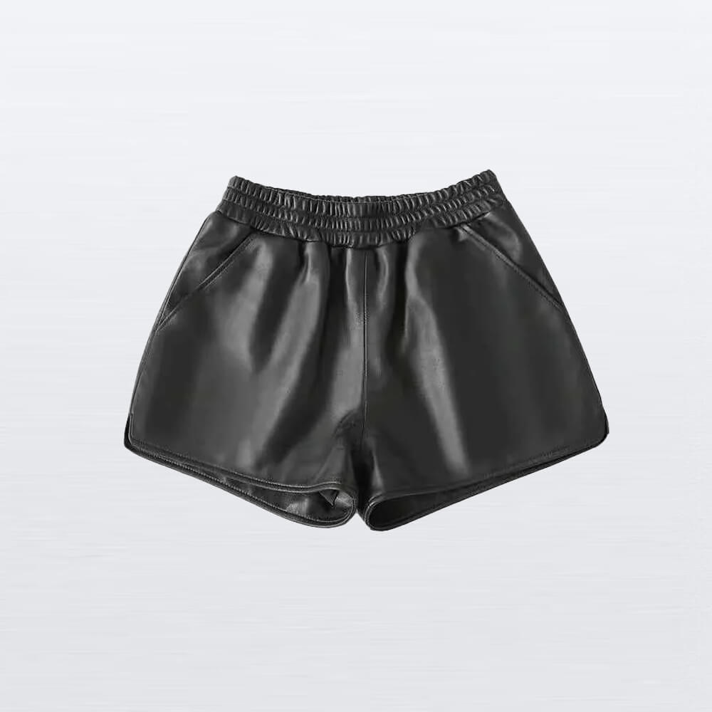 Combining comfort and style, these black leather shorts feature an elasticated waistband for a perfect fit. Made from genuine leather, they have a relaxed cut and two side pockets, making them a versatile and easy-to-wear piece for any casual outing.