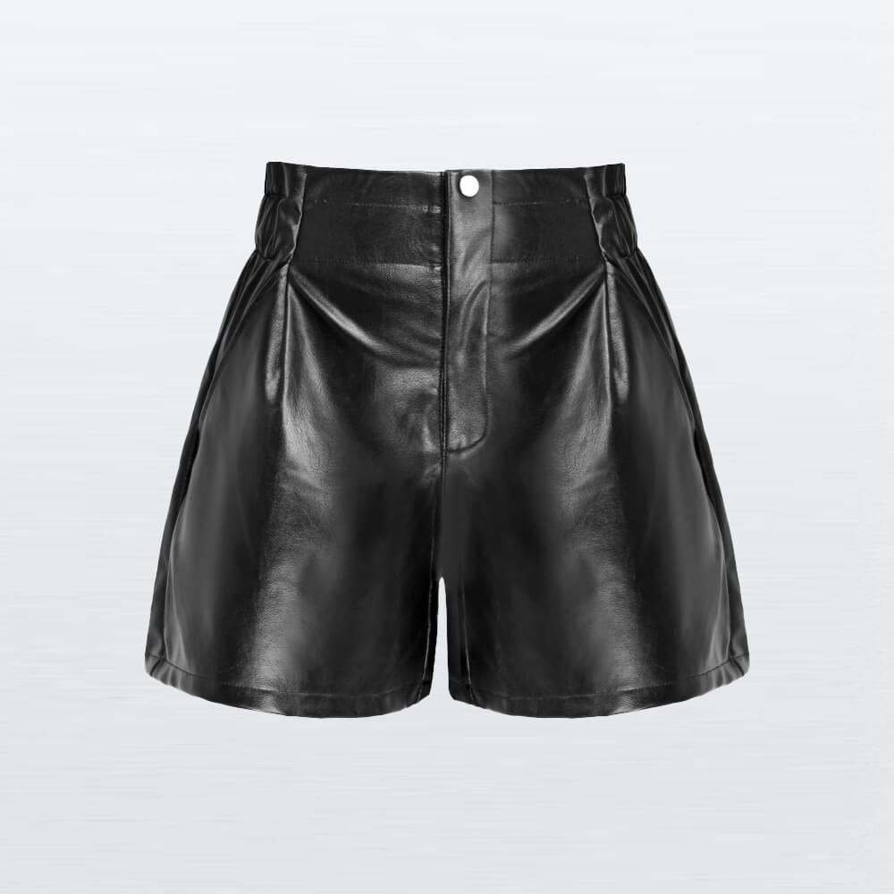 A chic and modern take on classic leather. These high-waisted shorts are crafted from supple black leather and feature elegant pleats and a structured fit. With a clean design, they offer both comfort and a sophisticated style that stands out.